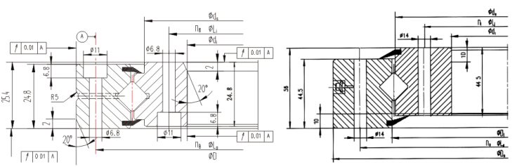 XSU系列交叉滾子軸承(內(nèi)、外圈整體型、高剛性、帶安裝孔)